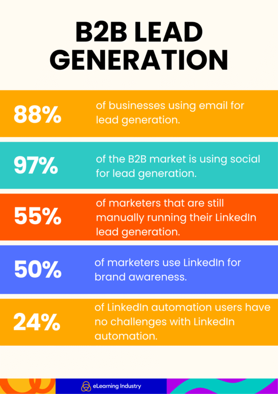 Social media might not come first in mind when you think about eLearning lead generation techniques, but it should be. You cannot ignore the fact that 75% of B2B buyers and 84% of C-level executives use social media during the decision-making process. Truth be told, social media impacts fostering sales leads. At the same time, it adds to your branding, thus offering eLearning businesses greater ROI in the long run.