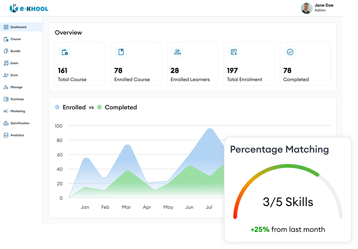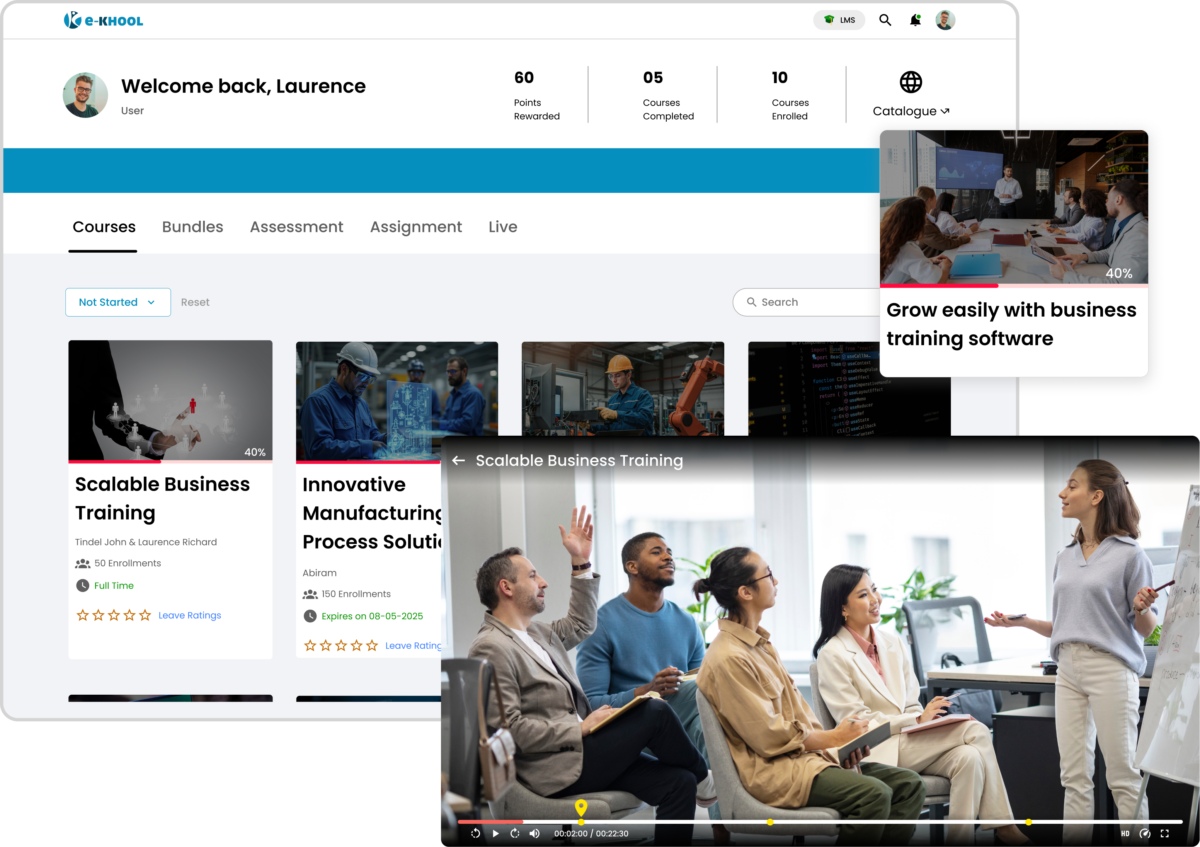 e-KHOOL LMS is a powerful, enterprise-grade learning management system designed for corporates, manufacturing industries, universities, and schools, enables workforce upskilling, and digital transformation through advanced content authoring tools and fully branded learner portals & mobile applications.