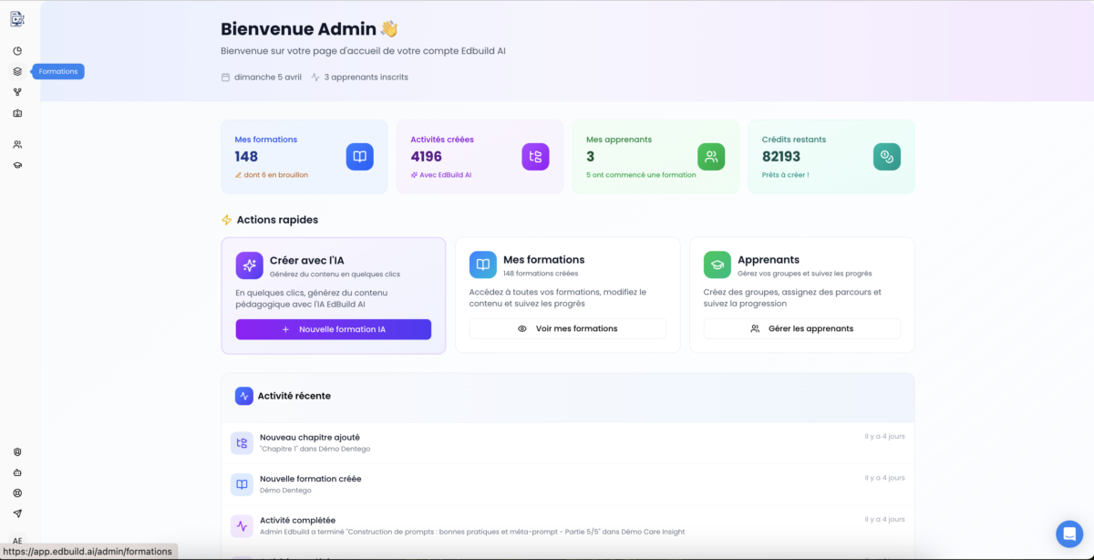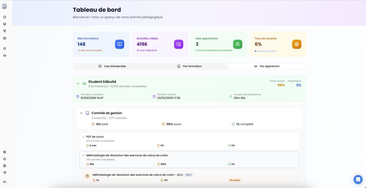 EdBuild AI is a French AI-powered e-learning authoring tool and LMS platform that automatically transforms documents (PDF, PowerPoint, Word) into complete interactive courses in minutes.