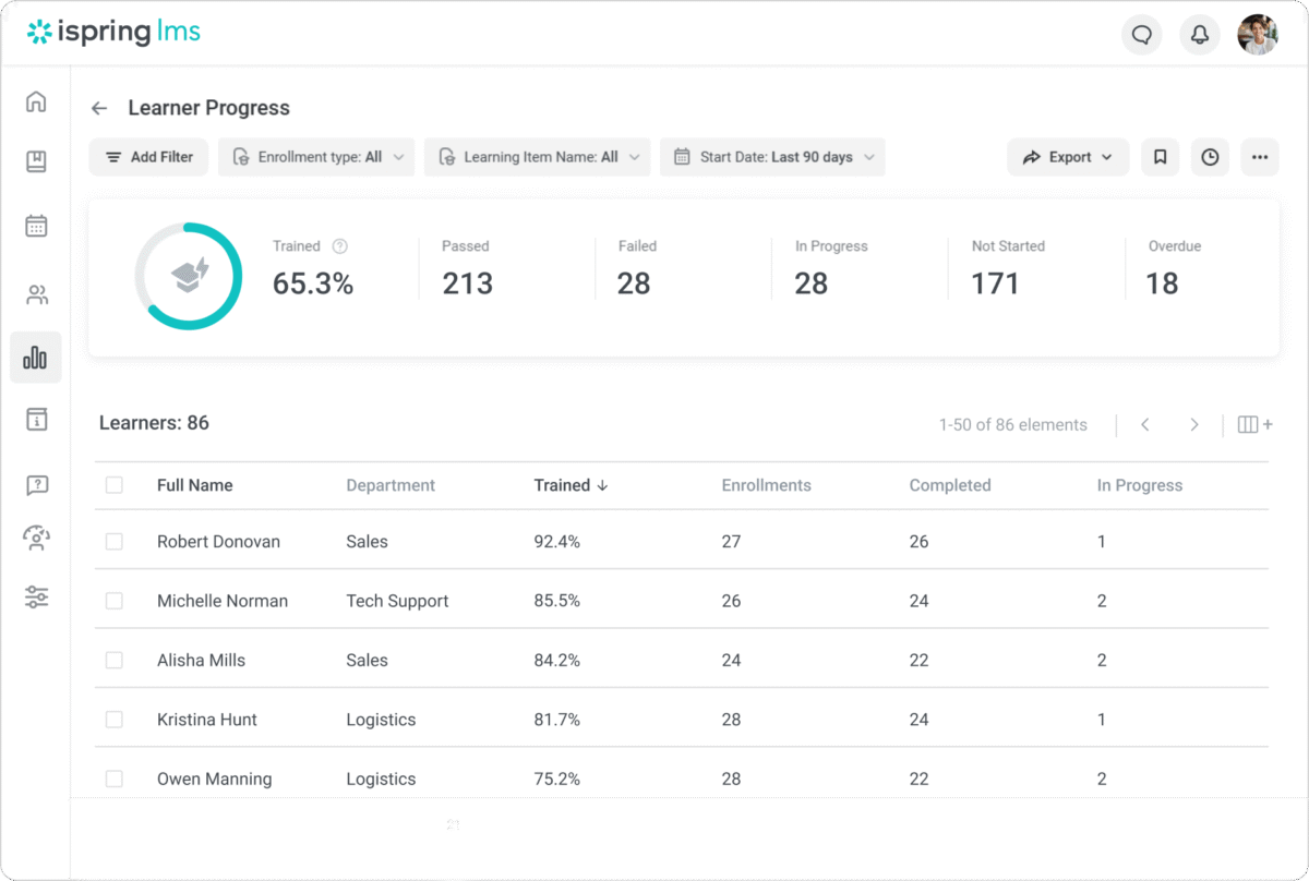 iSpring LMS is an award-winning learning platform that helps organizations power the entire training cycle, from onboarding to continuous employee development. It’s designed for teams that want structured, consistent training without adding administrative overhead or relying on IT support.