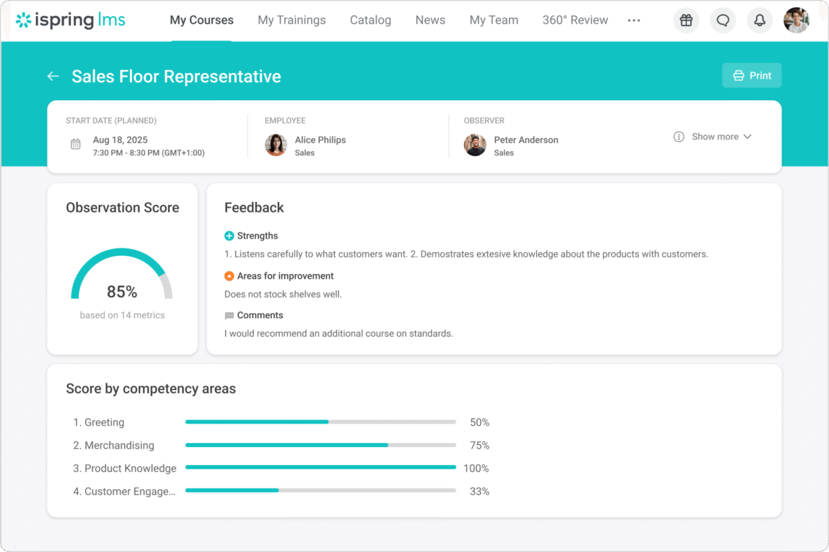 Many companies struggle with scattered materials, inconsistent onboarding, and little visibility into whether training is actually working. iSpring LMS solves these challenges with a clean system that keeps all learning activities organized and measurable. Administrators can structure users into groups and organizations, assign training automatically, and track skills and performance with straightforward, real-time insights. This makes it especially valuable for teams that want clarity and efficiency.