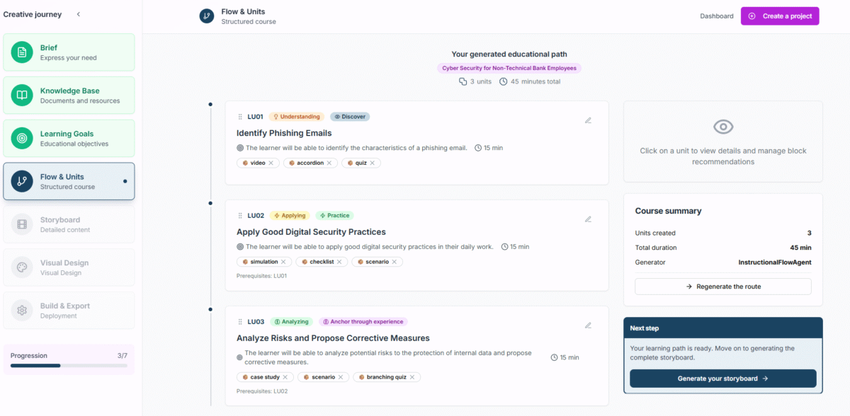 - AI-Powered Efficiency: Create complete e-learning courses in minutes instead of weeks through guided automation and intelligent assistance.