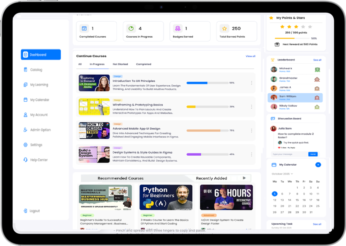 Motivate learners by recognizing milestones with badges and designations. Incorporate gamification, social discussions, and announcements and create a vibrant learning community.