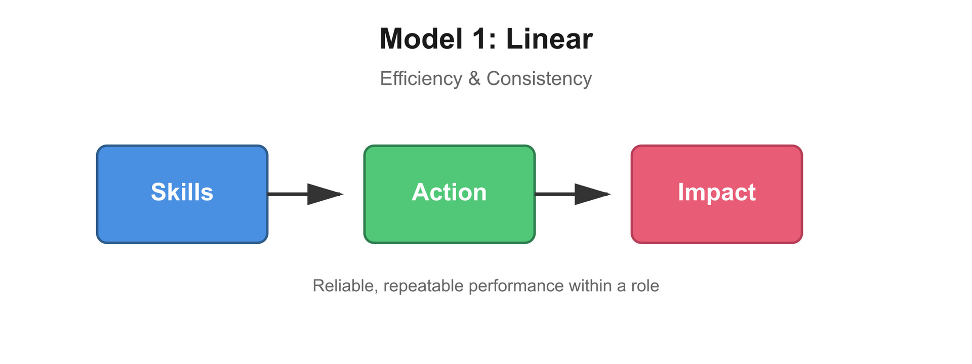 Image created by Claude (Anthropic AI) for Income|Outcome. (2025). "Model 1: Linear - Efficiency & Consistency." Digital illustration depicting the flow from Skills to Action to Impact.