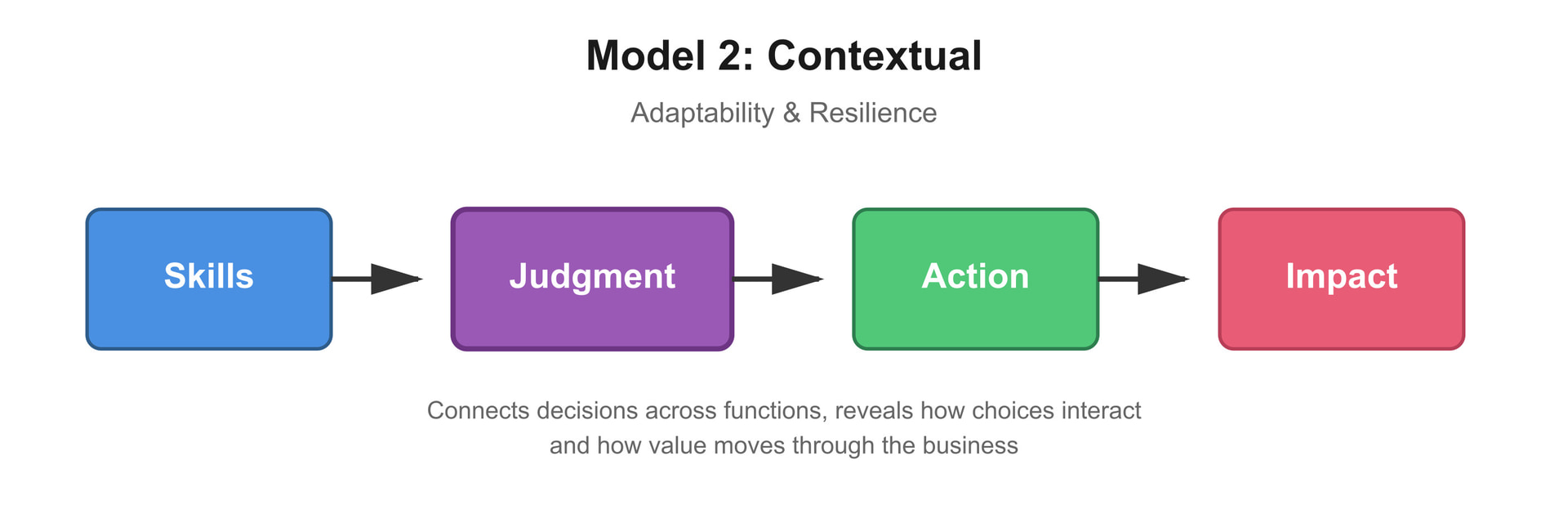 Both models matter. The first creates consistency and efficiency. Skill-based systems support reliable, repeatable performance within a role. The second creates adaptability and resilience. Judgment-driven systems connect decisions across functions, revealing how choices interact and how value moves through the business. This is the shift that business acumen makes visible.